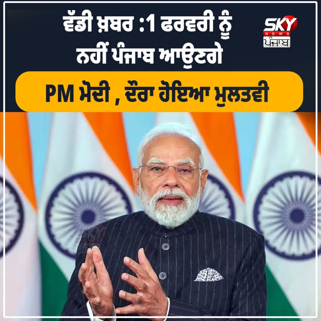 ਇਸ ਵੇਲੇ ਦੀ ਵੱਡੀ ਖ਼ਬਰ ਸਾਹਮਣੇ ਆ ਰਹੀ ਹੈ ਕਿ ਪ੍ਰਧਾਨ ਮੰਤਰੀ ਨਰਿੰਦਰ ਮੋਦੀ 1 ਫਰਵਰੀ ਦਿਨ ਐਤਵਾਰ ਨੂੰ ਪੰਜਾਬ ਦੌਰੇ ‘ਤੇ ਆ ਰਹੇ ਸਨ ਪਰ ਉਨ੍ਹਾਂ ਦਾ ਇਹ ਦੌਰਾ ਟਾਲ ਦਿੱਤਾ ਗਿਆ ਹੈ। ਸੂਤਰਾਂ ਤੋਂ ਮਿਲੀ ਜਾਣਕਾਰੀ ਤੋਂ ਪਤਾ ਲੱਗਿਆ ਹੈ ਕਿ ਪ੍ਰਧਾਨ ਮੰਤਰੀ ਮੋਦੀ 1 ਫ਼ਰਵਰੀ ਦੀ ਥਾਂ ਹੁਣ 2 ਫਰਵਰੀ ਨੂੰ ਜਲੰਧਰ ਆਉਣਗੇ ਅਤੇ ਉਸੇ ਦਿਨ ਹੀ ਡੇਰਾ ਸੱਚਖੰਡ ਬੱਲਾਂ ਵਿਖੇ ਨਤਮਸਤਕ ਹੋਣਗੇ।